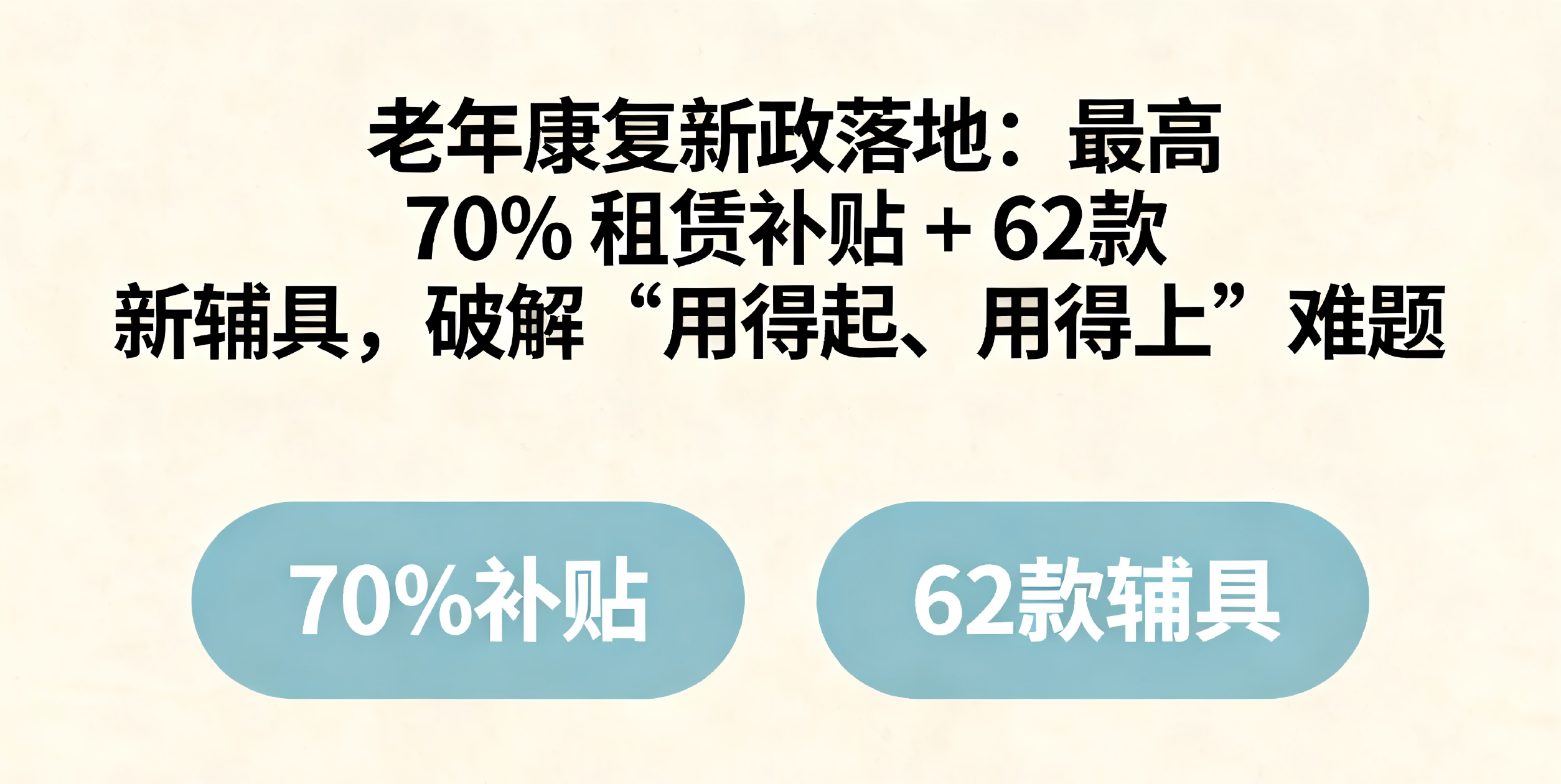 老年康复新政落地:最高 70% 租赁补贴 + 62 款新辅具,破解 “用得起、用得上” 难题